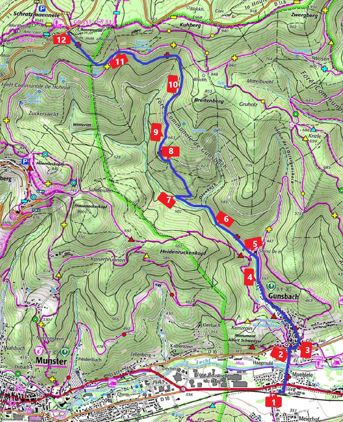 symbologie : croix rouge DEBUT : Gunsbach gareFIN : Baerenstall