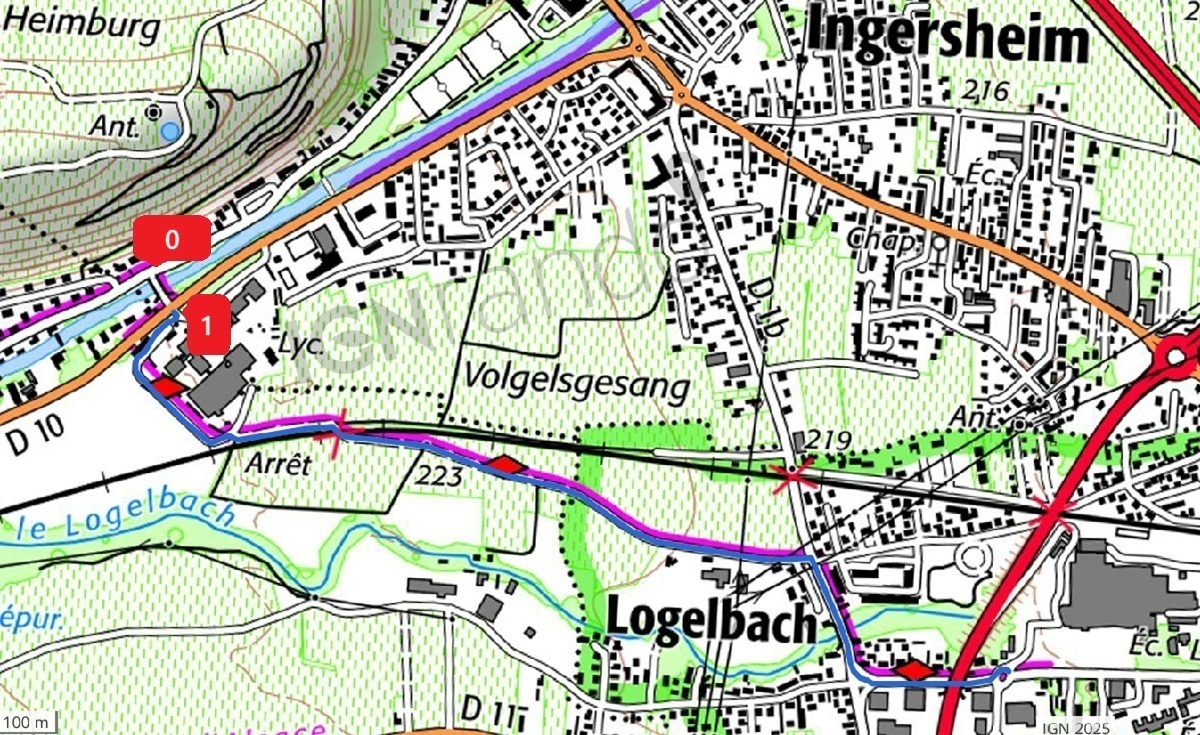 symbologie : losange rouge DEBUT : Logelbach centre LeclercFIN : Ingersheim Lycée