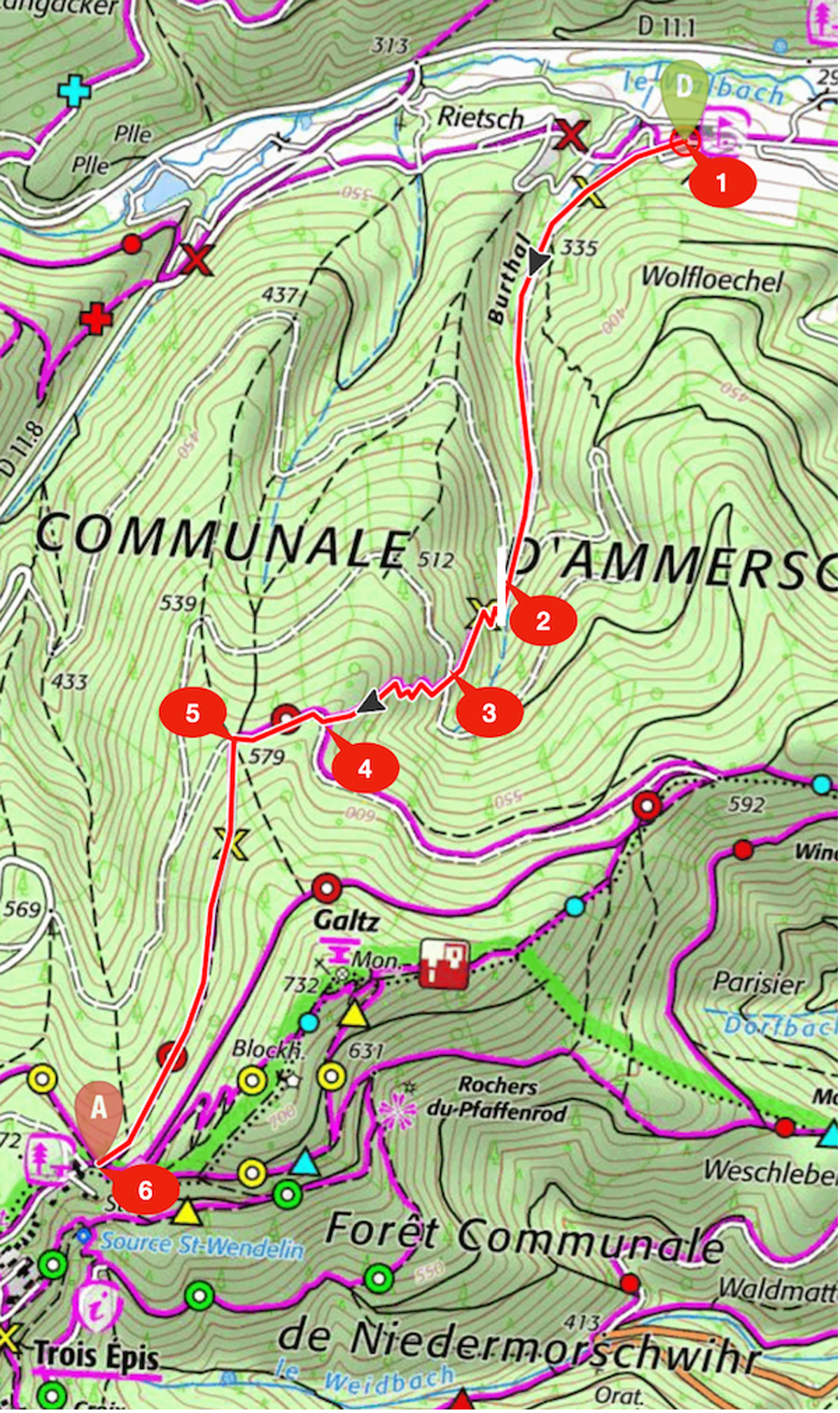 SENTIER : 3.1 LONGUEUR : 2480 m ZONE : 1 PLAN : P1 symbologie : Chevalet Jaune DEBUT : Golf hotelFIN : 5 epis main de fer RESPONSABILITE : Michel Haderer NOM SENTIER : Golf main de fer