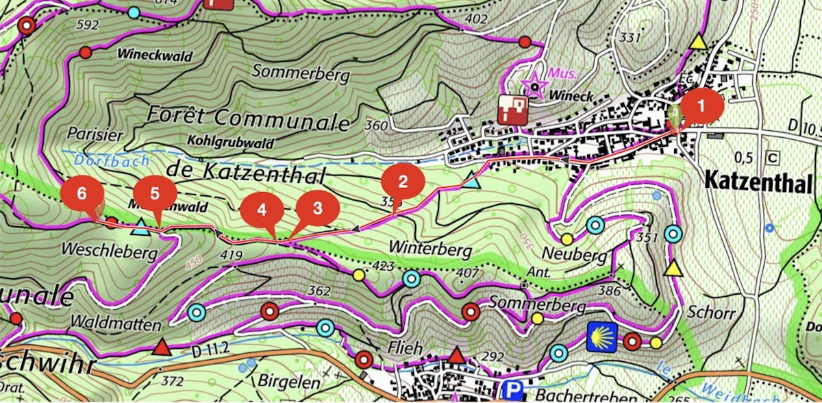 symbologie : triangle bleu DEBUT : Katzenthal centreFIN : Limite commune Katzenthal