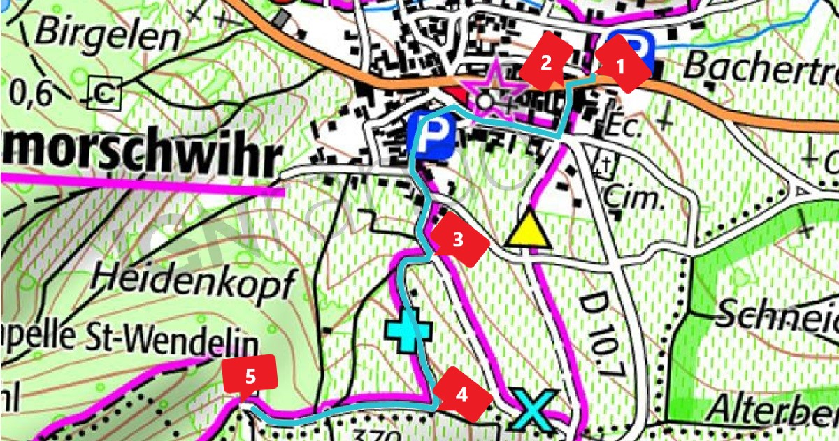 symbologie : Croix bleue DEBUT : Niedermorschwihr parking estFIN : Chapelle Saint Wendelin
